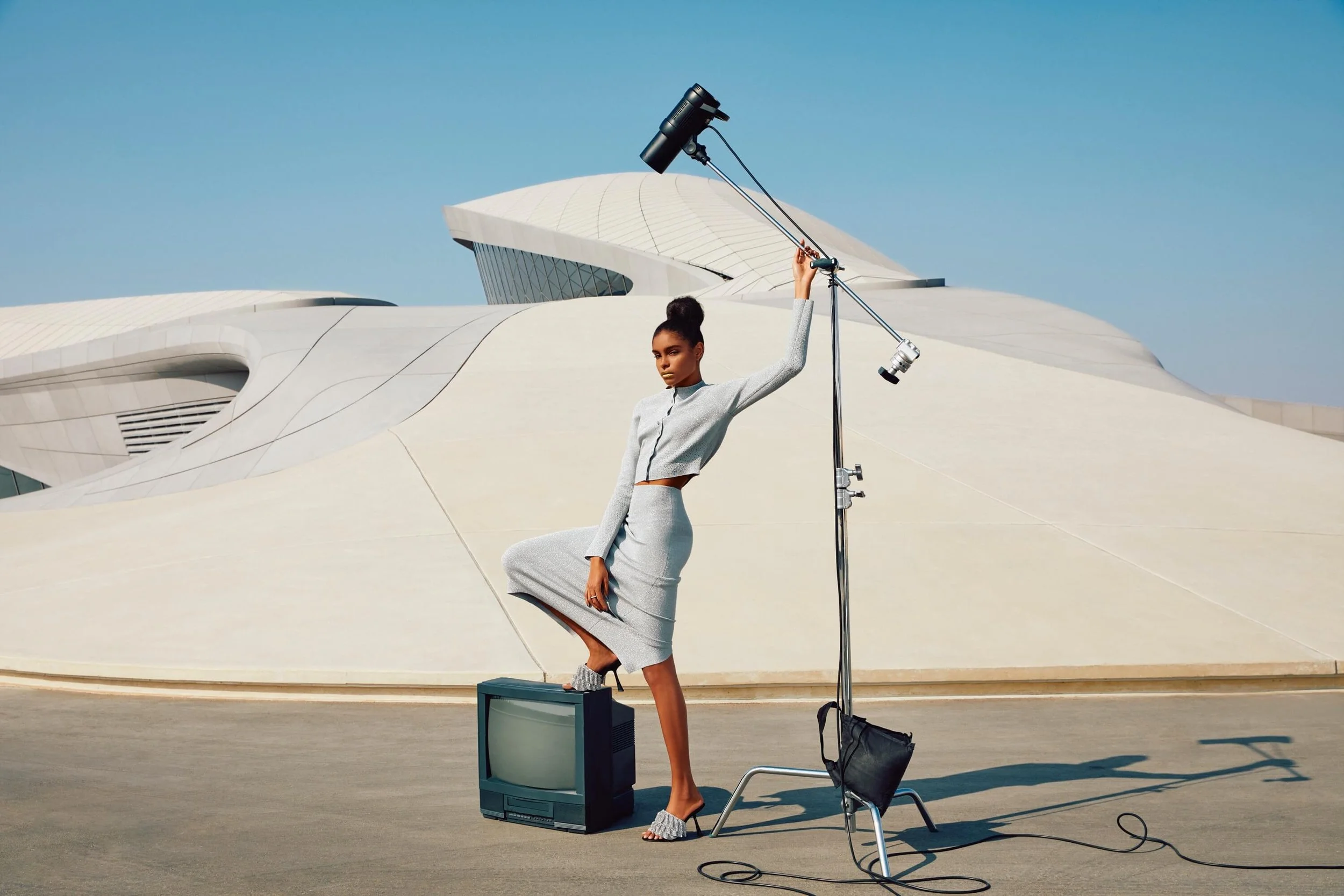 The future is beautiful, Bloomingdale's Spring Summer campaign shoot will be etched in my memory forever. Shot at the fascinating Bee'ah Headquarters in Sharjah, designed with a futuristic approach by Zaha Hadid, we accomplished capturing the very essence of innovation and fashion-forward thinking in the UAE. This digitally led shoot spoke to trends in fashion, beauty, tech, and home, giving our audience a glimpse of what's next.